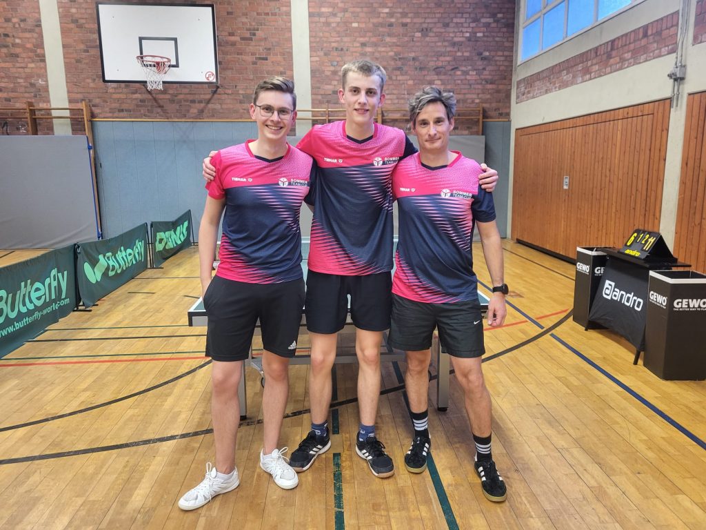 Das Team bestand aus Mannschaftsführer Falk Michels und Tristan Thulfaut vom TV Rheinbach sowie André Zimmermann vom TTC Ramershoven. Nach einer unglücklichen Auftaktniederlage fanden die drei eindrucksvoll zurück ins Turnier und feierten sechs Siege in Serie. Damit gewannen sie ihre Gruppe dank des besseren Satzverhältnisses. In der Zwischenrunde setzten sie sich anschließend souverän gegen starke Mannschaften aus Koblenz und der Nähe von Frankfurt durch und lösten so das Ticket für das Bundesfinale.